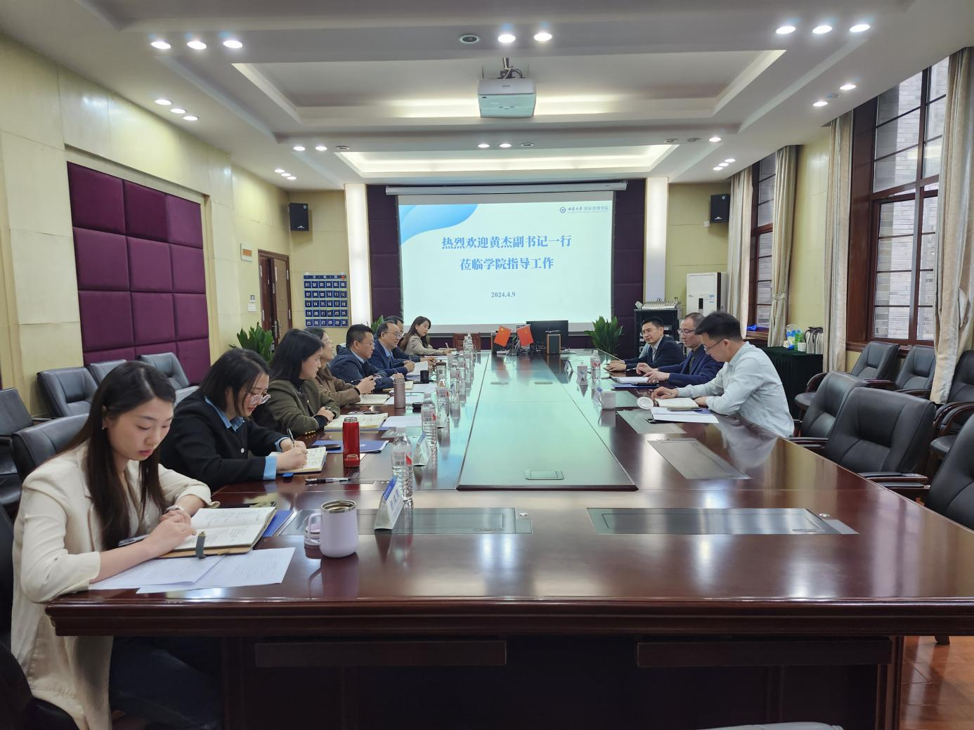 4月9日上午,学校党委副书记黄杰一行莅临学院调研指导学生工作,党委学生工作部部长、学生工作处处长、武装部部长许克松,招生就业处处长李栋宣陪同调研。学院党委书记刘勇,院长、党委副书记潘孝富,党委副书记、纪委书记陈丽华,党委副书记李长松及组织员、全体辅导员参加调研座谈会。