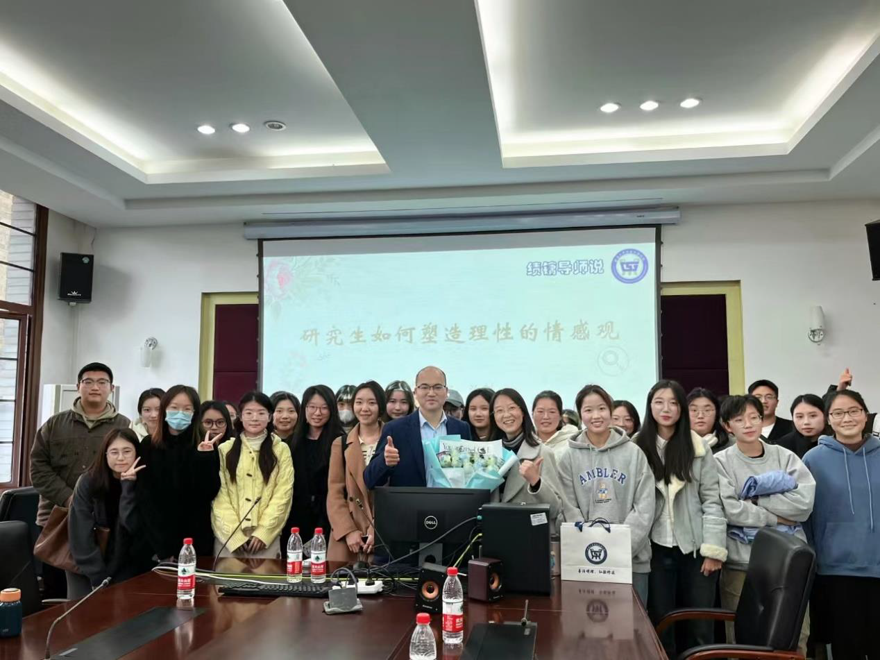 沙龙伊始,兰剑老师通过分享自己在研一时期的论文《当代中国大学生情感贫困的成因及对策》引入本次沙龙的讨论主题,并指出所有人都生活在一个充满情感的世界里,研究生的情感世界主要包括亲情、友情、爱情以及师生情,良好温暖的关系就像是一张“安全网”。而后,兰剑老师提出理性情感观的终极目标就是人与人之间“良性互动”的观念和准则,要实现这个目标需要做到有自控力、克制自己以及学会用理性的方法解决问题。最后,兰剑老师用自己的亲身经历以及周围人的故事回答了 “异性之间有没有纯友谊”、“分手之后还能不能做朋友”、“屡次分手又复合能不能最后在一起”以及“谈感情伤钱、谈钱伤感情”这四个学生们密切关心的情感问题,并希望同学们保持人格独立,不过度依赖别人,要有自己的事业和爱好。