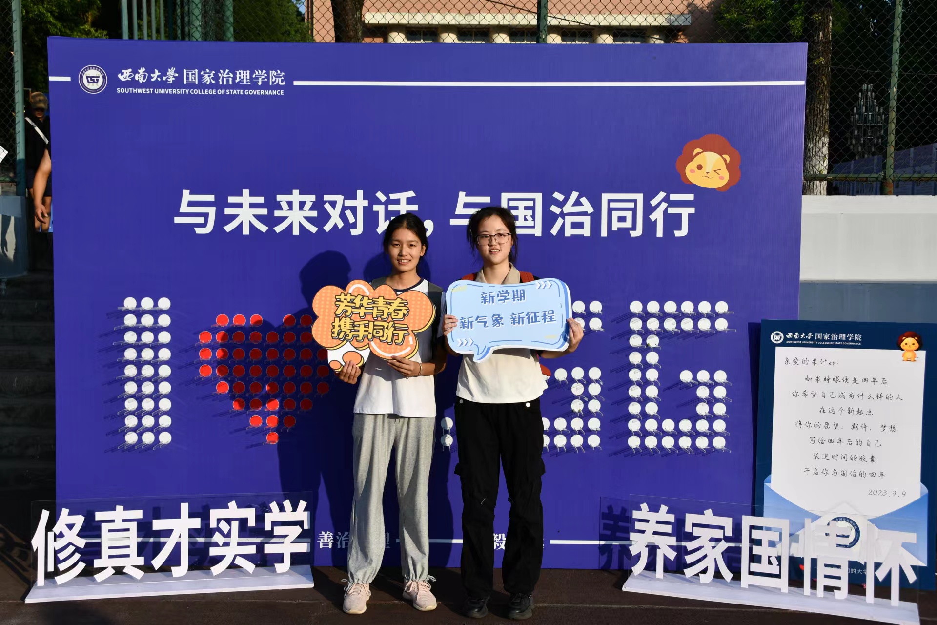 发布时间: 2023-09-12 16:57:42 已阅读:逢九月盛景,寄迎新之情。9月10日至11日,学院迎来了2023级208名本科生,他们带着对大学生活的期待,踏着青春朝阳的步伐,迈入了西大校园,成为一名“西大人”,一名“国治人”。