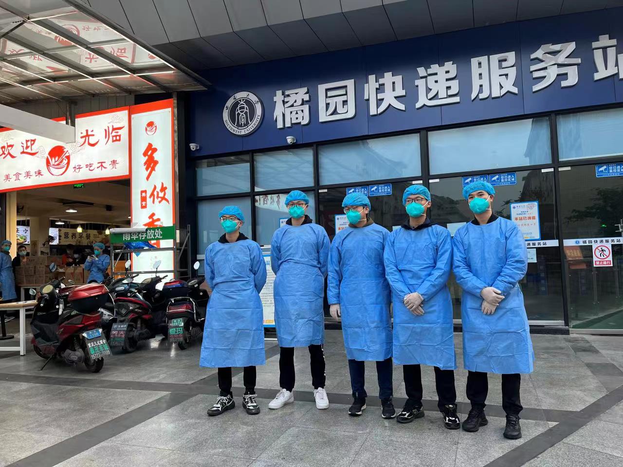 近日学校疫情防控形势严峻,橘园部分楼栋进行封控管理,人手紧缺,紧急招募志愿者。2021级社会学专业研究生李可、许晨阳挺身而出,穿戴齐一整套防护装备,危机感、责任感油然而生。作为送餐员,他们早上6点多起床为封控在宿舍的同学们送餐,无数次来回往返于食堂和寝室之间,搬运餐食一箱又一箱。“为了保障校园安全,这点辛苦不算什么。”他们坚定地说,“这都是绩镛先锋应该做的”。