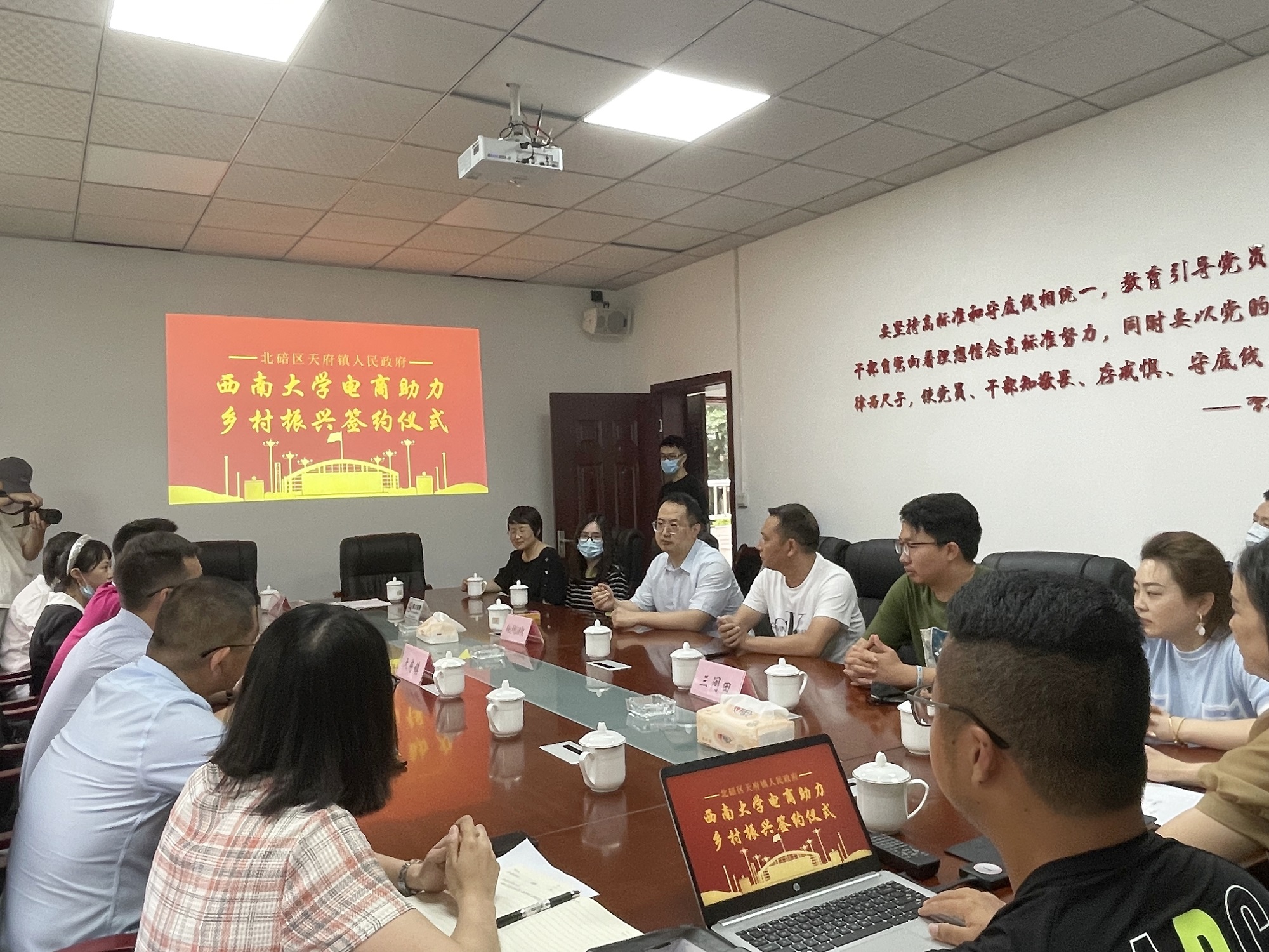 最后代表双方签订《必赢线路检测中心助力北碚区天府镇乡村振兴建设备忘录》。