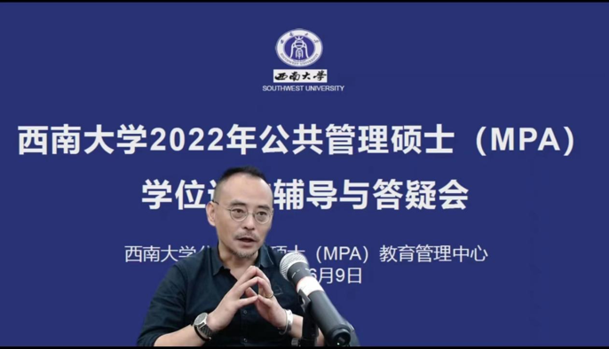 MPA中心主任王斌教授讲解了MPA学位论文的规范和流程,提出要重视学位论文的写作“规矩”和研究“范式”,并重点介绍硕士学术论文进程。MPA中心副主任张福磊副教授从论文选题、研究背景、文献综述和写作类型等四个方面讲解了MPA学位论文选题与写作中常见的问题及其规避。西南大学MPA优秀毕业生王涵斌、黄剑敌两位同学分享了他们硕士期间的毕业论文写作感悟,并号召同学们克服“拖延症”,积极主动地与导师沟通交流。会上,MPA指导教师与进行了互动答疑,解答了同学们在专业学习、导师选择、毕业论文写作等方面遇到的困惑。