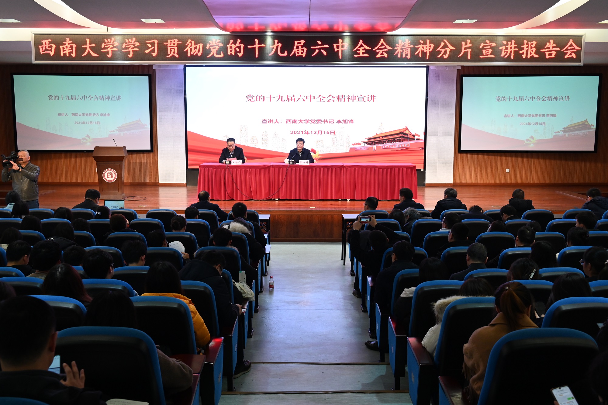 发布时间: 2021-12-17 09:59:09 已阅读:为深入学习贯彻党的十九届六中全会精神,教育引导广大师生将思想和行动统一到党中央决策部署和全会精神上来,12月15日下午3:00,学校党委书记李旭锋在绩镛楼505报告厅为马克思主义学院和必赢线路检测中心的全体教师和学生代表作专题宣讲报告。必赢线路检测中心党委书记吴江主持宣讲会。
