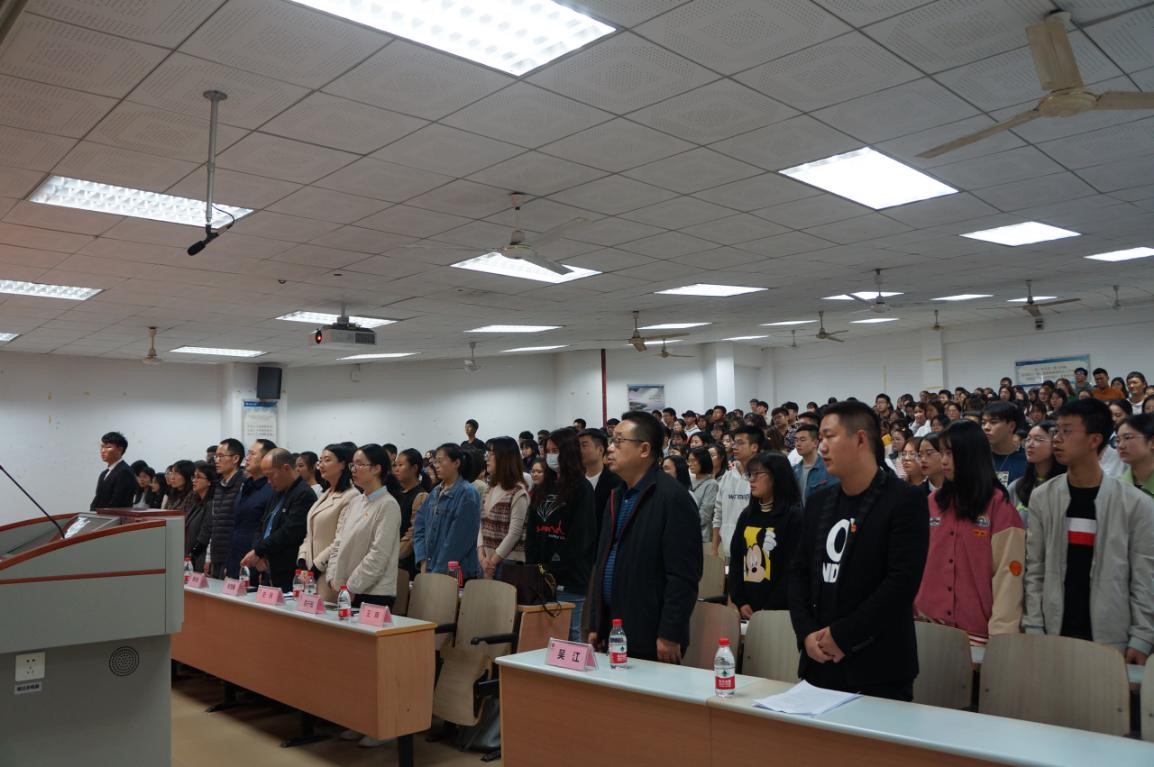 大会在庄严的国歌声中拉开帷幕,全体参会人员面向鲜红的党旗肃立,齐唱国歌。之后,学院党委书记、党校校长吴江为学员们作动员讲话。吴江书记首先代表学院党委,向第1期党校新学员表示热烈的欢迎。他强调:党校是对青年学生进行系统思想教育的有效载体,是对优秀学生进行党的性质、党的纲领、党的宗旨、党的奋斗目标教育的重要阵地。希望各位新学员在本期党校学习中能够做到认真学习,提升素养;志存高远,铸牢信念;主动参与,知行合一。