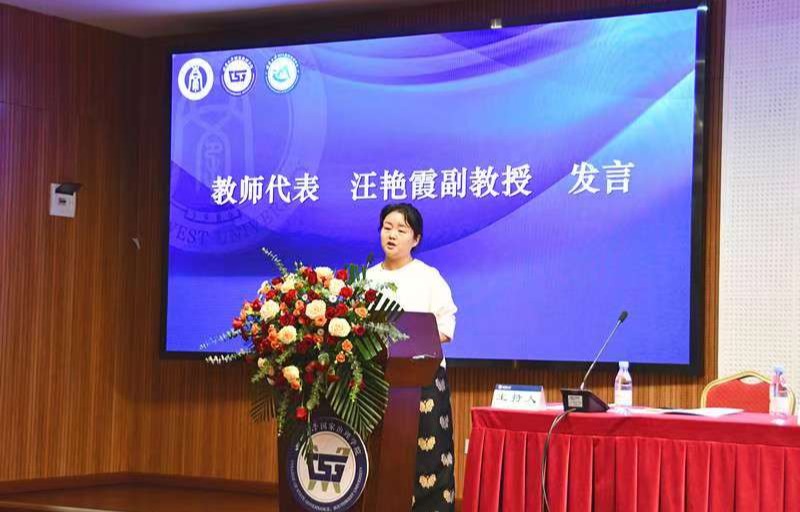 (图片说明:教师代表汪艳霞副教授发言)