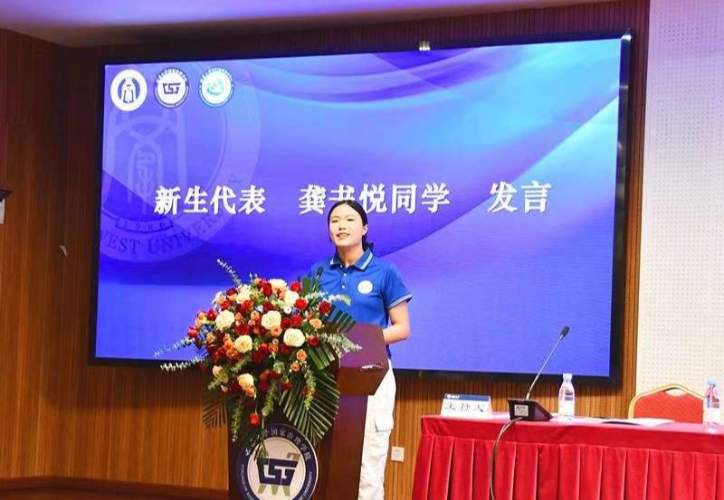 (图片说明:新生代表龚书悦同学发言)