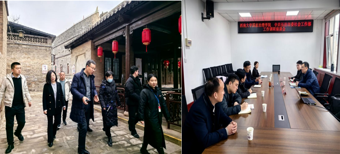 2月17日上午,调研团与太原市委组织部、社会工作部相关负责人就人才培养、“两企三新”等工作开展座谈会议。2月18日上午,调研团与阳泉市社会工作部相关负责人就基层治理、必赢官网、“小马拉大车”等开展座谈会议。2月19日上午,调研团与长治市委组织部、高层次人才研究中心、长治市人才集团相关负责人就人才工作、院地合作、基层治理工作开展座谈会议。2月19日下午,调研团与武乡县委组织部、县发改委、县人社局、县文旅局相关负责人就干部培养、经济发展、社会治理、乡村振兴开展座谈会议。2月20日上午,调研团与晋城市委组织部、晋城市教育局、晋城一中等单位领导及在晋城一中工作的西南大学校友就人才合作、院地合作开展座谈会议。2月20日下午,调研团在阳城市委组织部、阳城市委党校领导的陪同下实地调研北留镇郭峪村、皇城村、凤城社区、鸣凤社区党群服务中心等。2月21日下午,调研团在临汾市委组织部、临汾市社会工作部与相关领导就合作事宜就开展座谈会议。