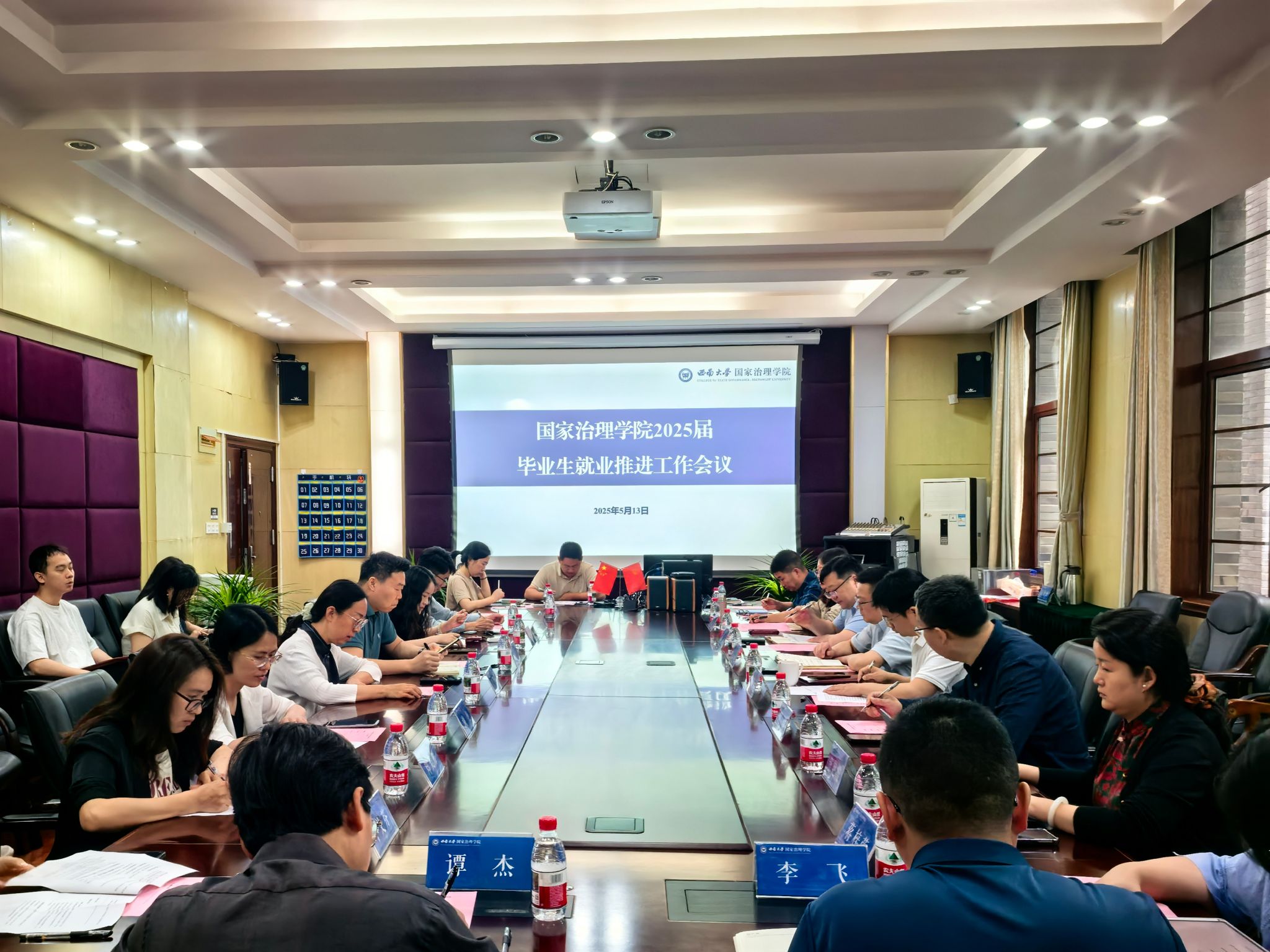 发布时间: 2025-05-14 16:37:07 已阅读:为切实保障2025届毕业生高质量充分就业,扎实做好就业冲刺工作,5月13日上午9:30学院于3201会议室召开了2025届毕业生就业推进会。会议邀请到西南大学学生职业发展与就业服务中心陈渝副主任指导,学院党政领导、各系主任、副系主任、2025届及2026届本科生班主任以及全体辅导员参与会议。会议由学院党委副书记、纪委书记陈丽华主持。