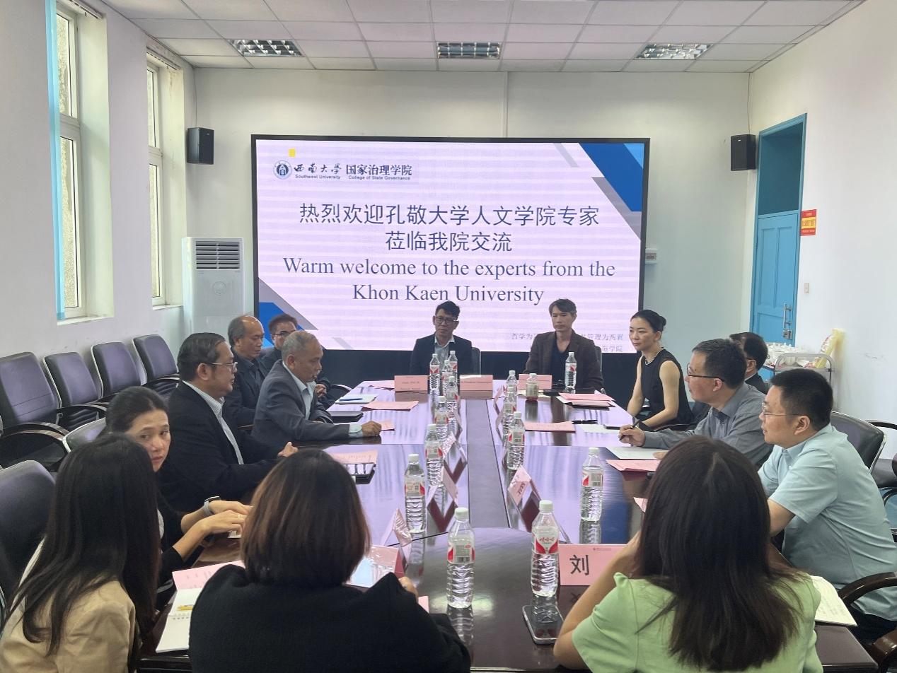 孔敬大学代表团成员逐一介绍了该校在社会发展、区域治理等领域的研究特色,并展示了发展科学哲学博士项目的培养模式。Thanapauge Chamaratana提出,希望与西南大学合作开展“东南亚乡村治理比较研究”,“跨境民族社会问题”等课题,通过联合调研、举办国际研讨会等方式整合学术资源,形成具有国际影响力的研究成果。Aphiradee Wongsiri则针对社会发展专业的实践教学经验,分享了泰国社区发展项目的案例,提议两校共同开发“跨国社区治理”实践课程,为学生提供跨文化实践机会。