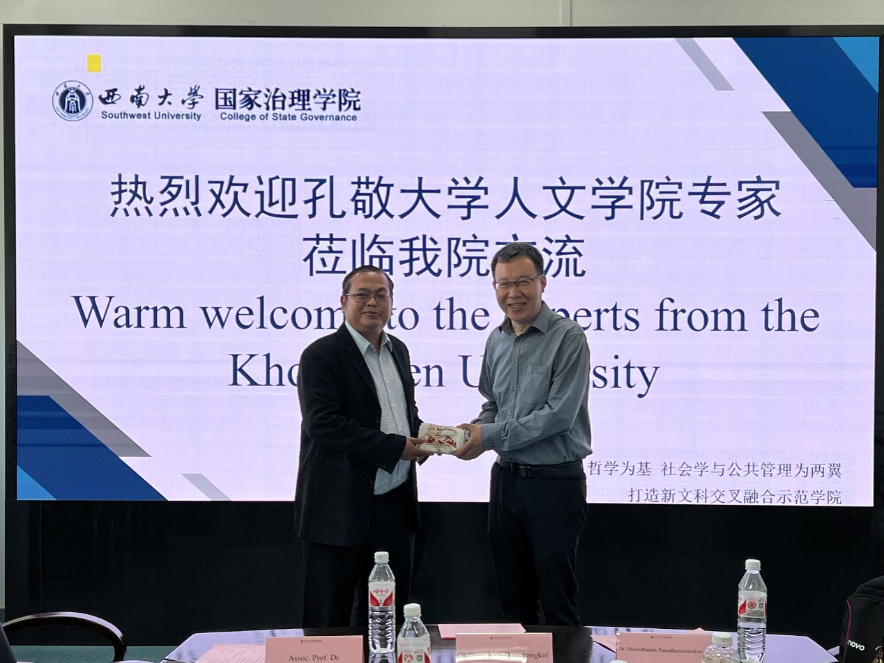 Buapun Promphakping对西南大学的热情接待表示感谢。他介绍,孔敬大学人文学院以培养具有国际视野的复合型人才为目标,此次来访希望与西南大学建立长期稳定的合作关系,特别是在发展科学、社会治理等领域开展联合研究,并吸引更多中国学生赴泰攻读研究生项目。他强调,两校学科布局高度契合,合作空间广阔,相信通过此次交流能为双方师生搭建更广阔的学术平台。