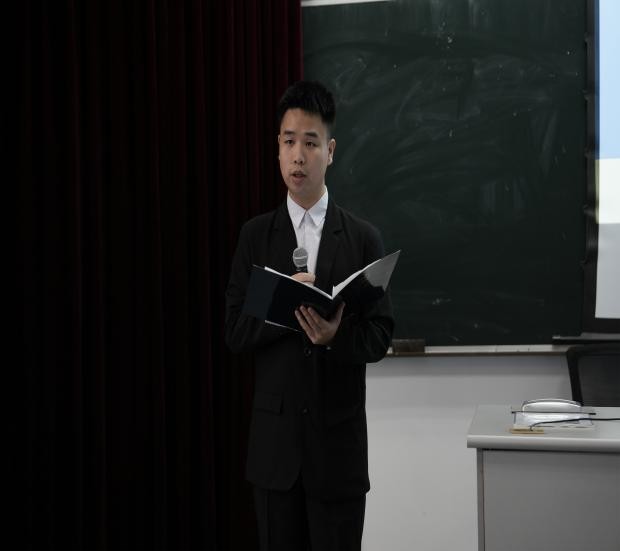第六届团委主席团代表蒋浩文发言。他表示新一届团委学生会将共同牢记使命、扎根服务、保定初心、施展才华、凝心聚力、彰显风采,共同打造一个更加独具特色与风采的学生组织。