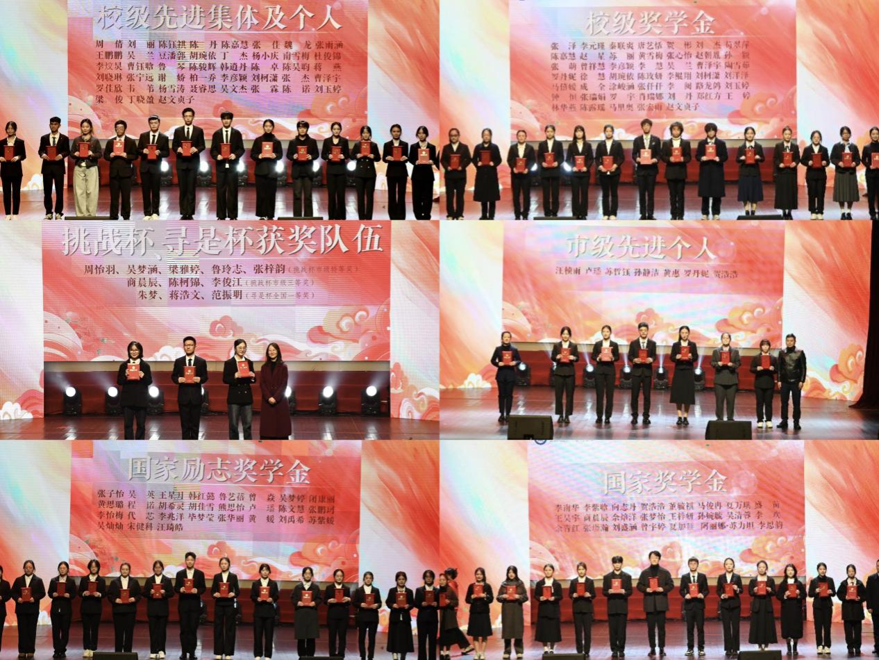 在本次盛典的颁奖环节,学院领导为荣获国家奖学金、市级先进个人等六大类别奖项的获得者颁发了荣誉证书。此次颁奖典礼,既展现了国治学子的风采,又以榜样的力量激发了师生的奋进热情。未来,学院师生将以优秀典范为指引,勇担使命,共同开启学院新征程。