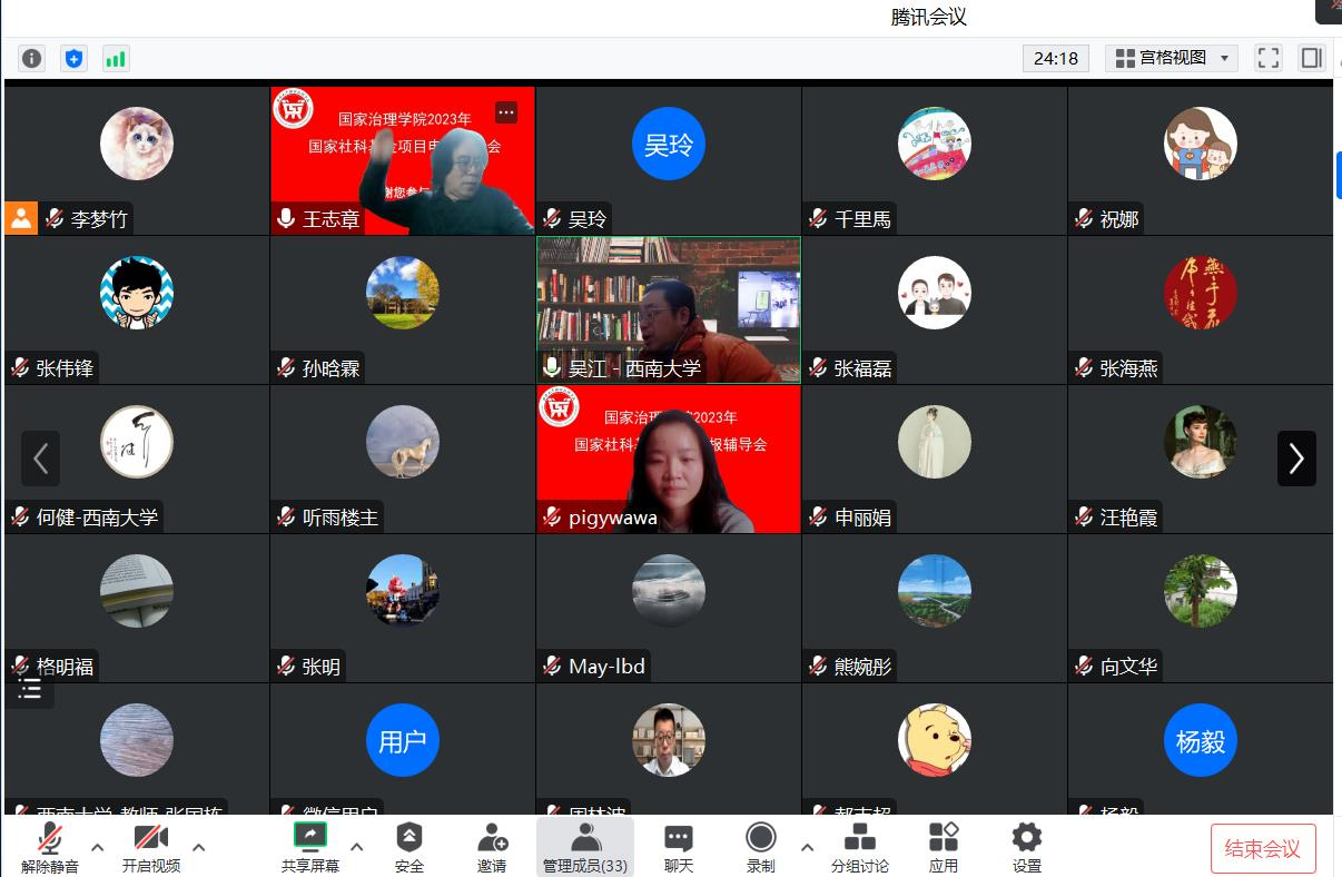 发布时间: 2023-01-13 19:50:13 已阅读:为进一步提升必赢线路检测中心公共管理系社会科学研究水平,提高国家社科基金项目申报质量,2023年1月13日下午3:00,公共管理系国家社科基金项目申报辅导会于线上顺利举行。此次辅导会邀请到西南大学经济管理学院王志章教授做了题为《扣二十大精神 精心做好基金选题的一点建议》的报告。讲座由我院公共管理系系主任诸彦含教授主持,学院分管领导何健副院长、公共管理系以及社会学与社会工作系近40名老师以线上形式参与了此次辅导会。