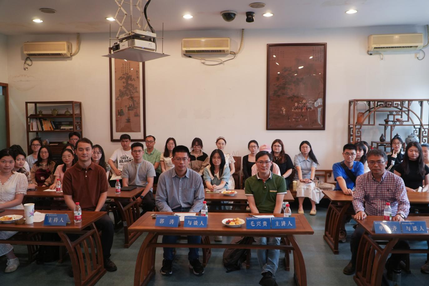 在讨论交流环节,郭涛从古希腊城邦的起源切入,分析了权威模式从神权到契约的演变,指出早期城邦的权威依赖于宗教共识,而现代国家的合法性则更多源于程序正义。单正齐结合中国哲学传统,阐释了儒家“以德服人”与道家“无为而治”对权威的理解,并对政治权威与人性、理性的关系提出思考,认为面对权威应保持独立思考和判断能力。同学们先后就“权威程度差异是否影响服从义务”“信息欺骗是否削弱权威合法性”“严格规范意义的政治权威是否是一种乌托邦”等提出了自己的看法和疑问。针对以上问题,毛兴贵予以耐心解答,让在座的师生都受益匪浅。