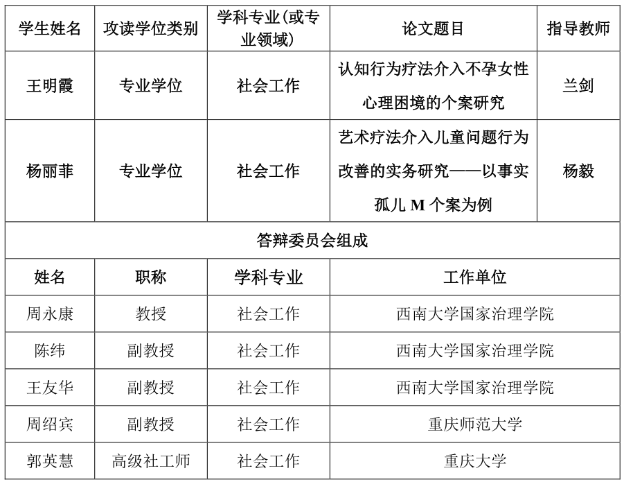 必赢线路检测中心社会工作专业2022年秋季学期学位答辩安排公告