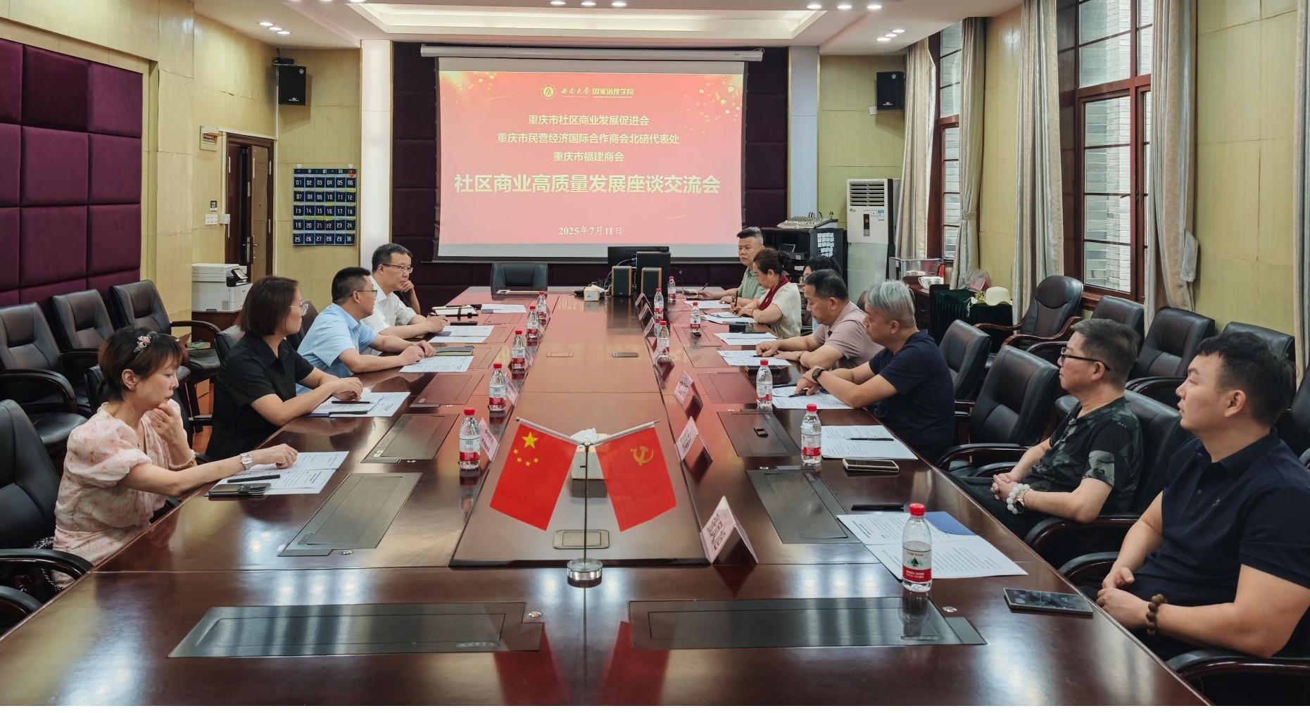 发布时间: 2025-07-11 15:42:45 已阅读:7月11日,“赋能基层治理,推动社区商业高质量发展”交流会在必赢线路检测中心顺利举行。重庆市社区商业发展促进会、重庆民营经济国际合作商会北碚代表处、重庆市福建商会等多家单位代表来院交流。各方结合重庆市社区商业发展需求,就校社协同、产教融合、社区人才培养等议题深入交流,达成多项合作共识。