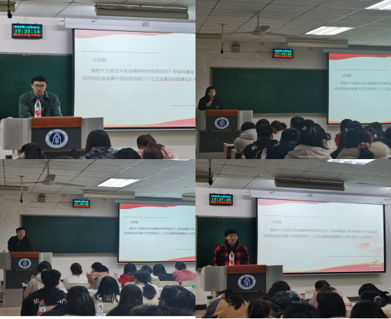 然后,袁千懿老师带领同学们深刻认识了我国进入新发展阶段的重大意义、有利条件和重要特征,准确把握二〇三五年远景目标和“十四五”时期我国发展的指导方针、主要目标、重点任务,牢牢把握构建新发展格局的战略构想和重要着力点,坚持党的全面领导、动员各方面力量为实现“十四五”规划和二〇三五年远景目标而团结奋斗等4个方面,进行了系统宣讲和阐释。