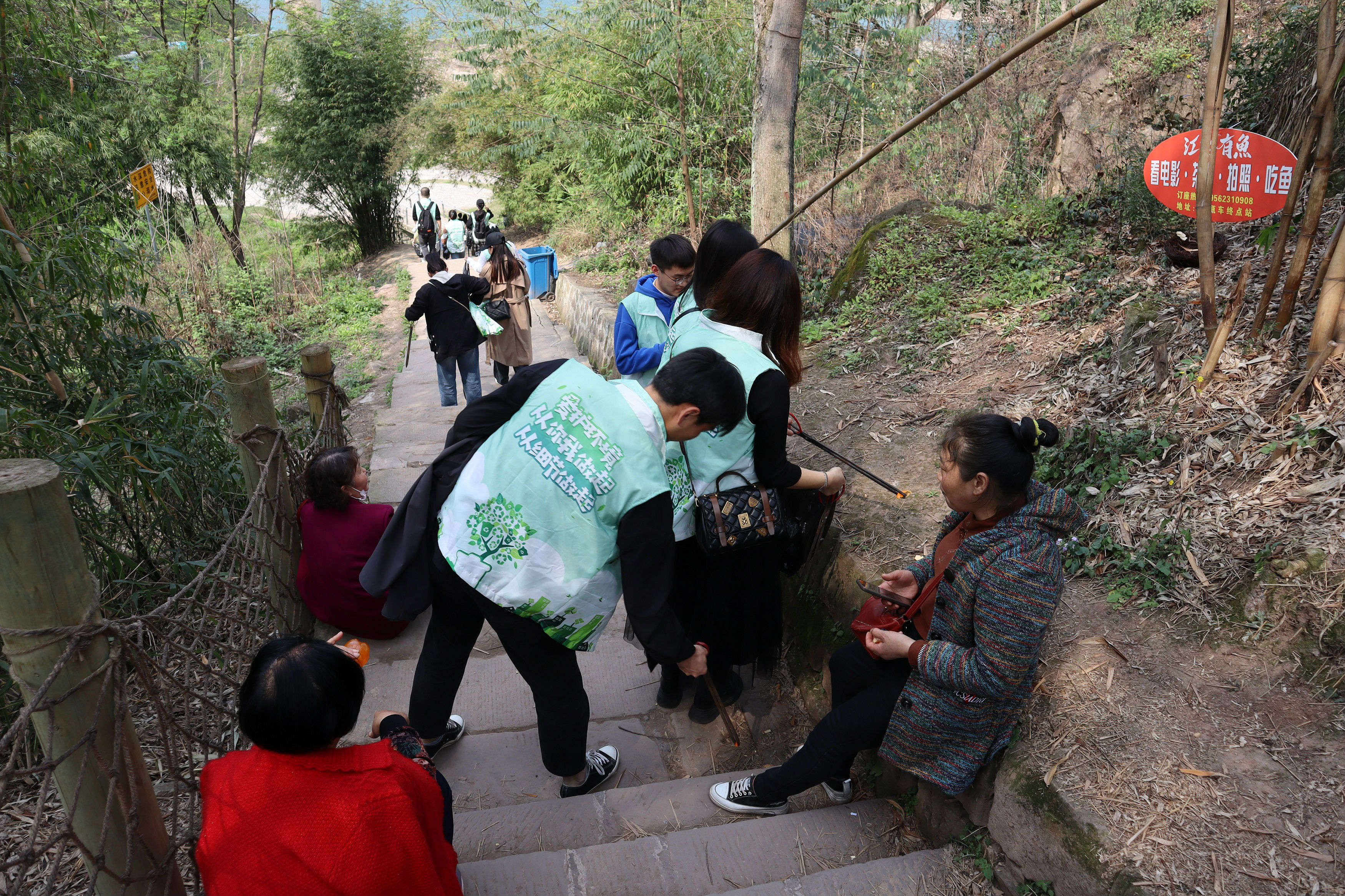 图2:党员志愿者在嘉陵江边捡拾垃圾