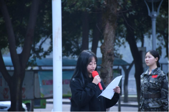 我院2021级公管5班学生代表刘巧作国旗下的演讲。刘巧分享了她在大一上学期,作为一名新生、一名团支书、一名入党积极分子、一名新时代青年的思考与收获。刘巧同学面向国旗呼吁国治学子勇担使命,搏击青春成栋梁。