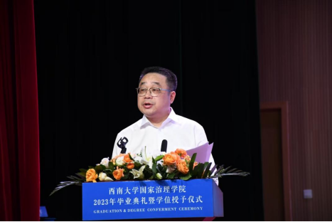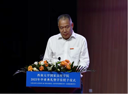 发布时间: 2023-06-25 10:43:06 已阅读:栀子花开时,骊歌再唱响。6月21日下午15:30,学院2023年毕业典礼暨学位授予仪式在西南大学圆顶3楼报告厅隆重举行。西南大学党委常委、副校长葛信勇、学院党政领导、学术委员会委员、研究生导师及教师代表,2023届博士、硕士、本科毕业生及低年级学生代表参加此次典礼。