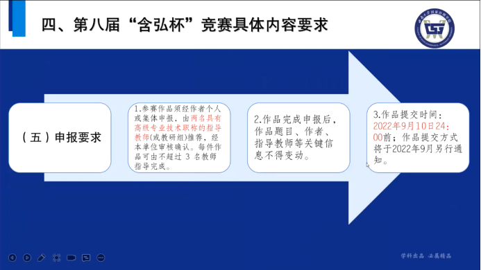 最后,主讲人从竞赛时间、竞赛对象、申报范围、申报类别及申报要求五个方面详细地说明了第八届“含弘杯”学生课外学术科技作品竞赛的具体内容要求,强调我院同学可以重点关注哲学社会科学类这一申报类别,并附上第十七届“挑战杯”全国大学生课外学术科技作品竞赛中部分哲学社会科学类获奖作品选题,供同学们参考借鉴。