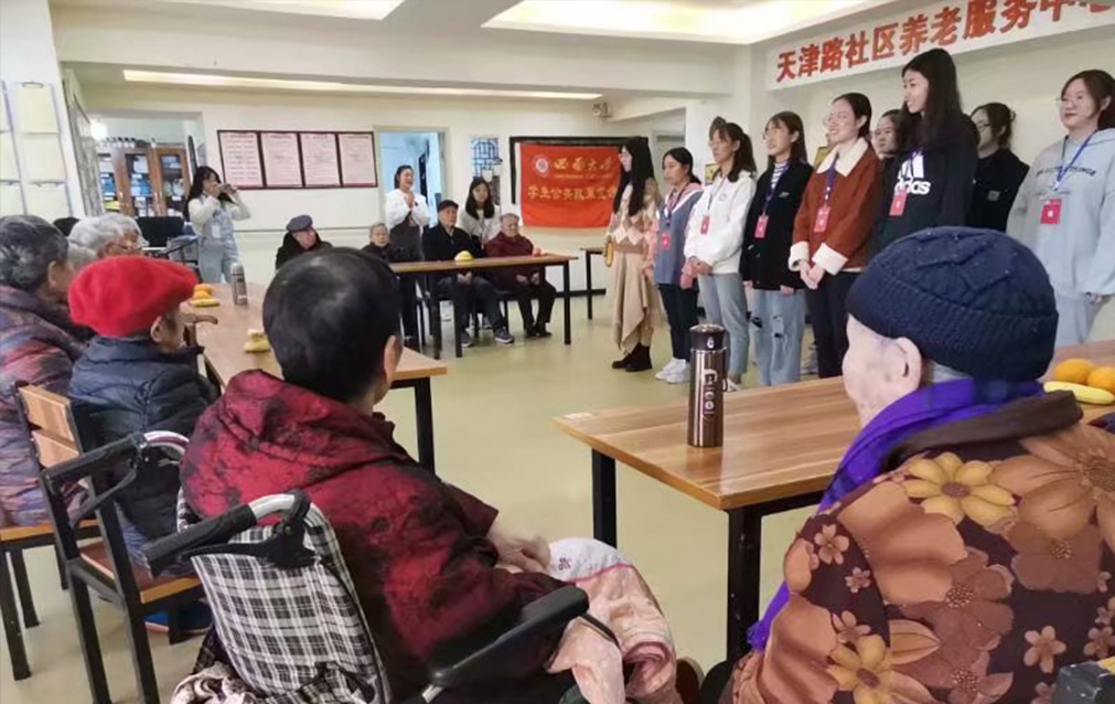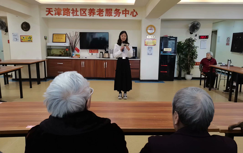 近年来,我国出台了诸多关于养老的政策方针,在老年人保障方面也取得了许多成就。但随着我国老龄人口不断增加,越来越多老年人进入养老院,缺乏亲友子女的关心和陪伴。为响应国家号召、推进国家政策落实,让大学生更加积极承担社会责任,彰显青年希望,弘扬中华传统孝精神,西南大学学生公共政策宣讲团(以下简称“公宣团”)联合西南大学宣政在线网络文化工作站于2020年11月15日9:30走进天津路社区养老服务中心,举办此次“爱在初冬,情暖人心”志愿活动。