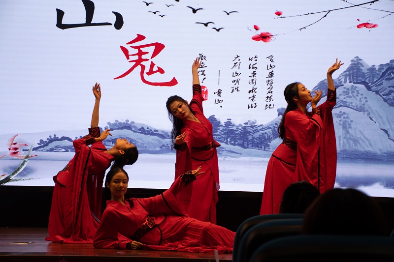 上半场的表演结束,接下来的互动环节让全场同学参与进来,晚会气氛变得更加活跃。民族舞《山鬼》中的表演者们袭一身素红,在曼妙多彩的舞台上,婀娜多姿,率真美艳。紧接着的歌曲《今夜江滩公园没有firework》,演唱者与观众共情互动,前后风格切换让观众眼前一亮。“此曲只应天上有,人间能得几回闻”。由古琴社带来的《神话》让全场见证来自古代的绝响,聆听穿越千年的声音。RAP《不用去猜》则借歌曲为心有迷茫的同学拨开未来的迷雾——不去预测,不想结果,过好当下,是好是坏,不用去猜。晚会的最后,朗诵者慷慨吟诵《继往开来,国之将才》,天道酬勤,是国治人心中不变的信念,学行西大,立鸿鹄壮志,我辈学子定当振国治雄风。