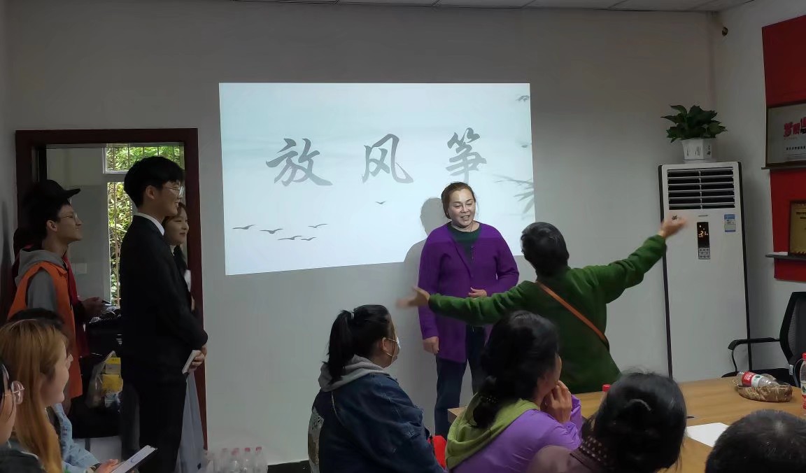 在主持人袁源、姚卉介绍本次故事分享会的背景后,三位公宣团成员以生动形象的表演依次分别向大家讲述了腊八节、春节、重阳节的故事,将这三个节日的来源、发展、主要习俗以及蕴含的精神内涵向大家娓娓道来。接着,活动进行至“你来比划我来猜”游戏互动环节。在工作人员示范后,奶奶们积极参与、默契配合、积极答题,赢得了公宣团成员们准备的精美礼品。