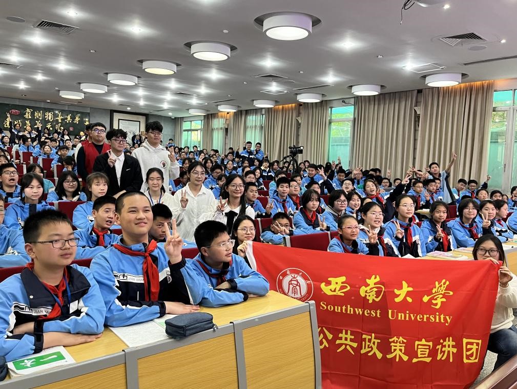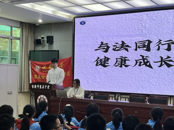发布时间: 2024-04-17 16:10:32 已阅读:为了有效防范和遏制校园霸凌事件发生,提高广大师生对校园欺凌危害的认识,4月8日,西南大学学生公共政策宣讲团(以下简称“公宣团”)深入重庆市兼善中学开展了“拒绝霸凌 与爱同行”反校园霸凌宣讲活动,积极为推进校园法治教育贡献力量。