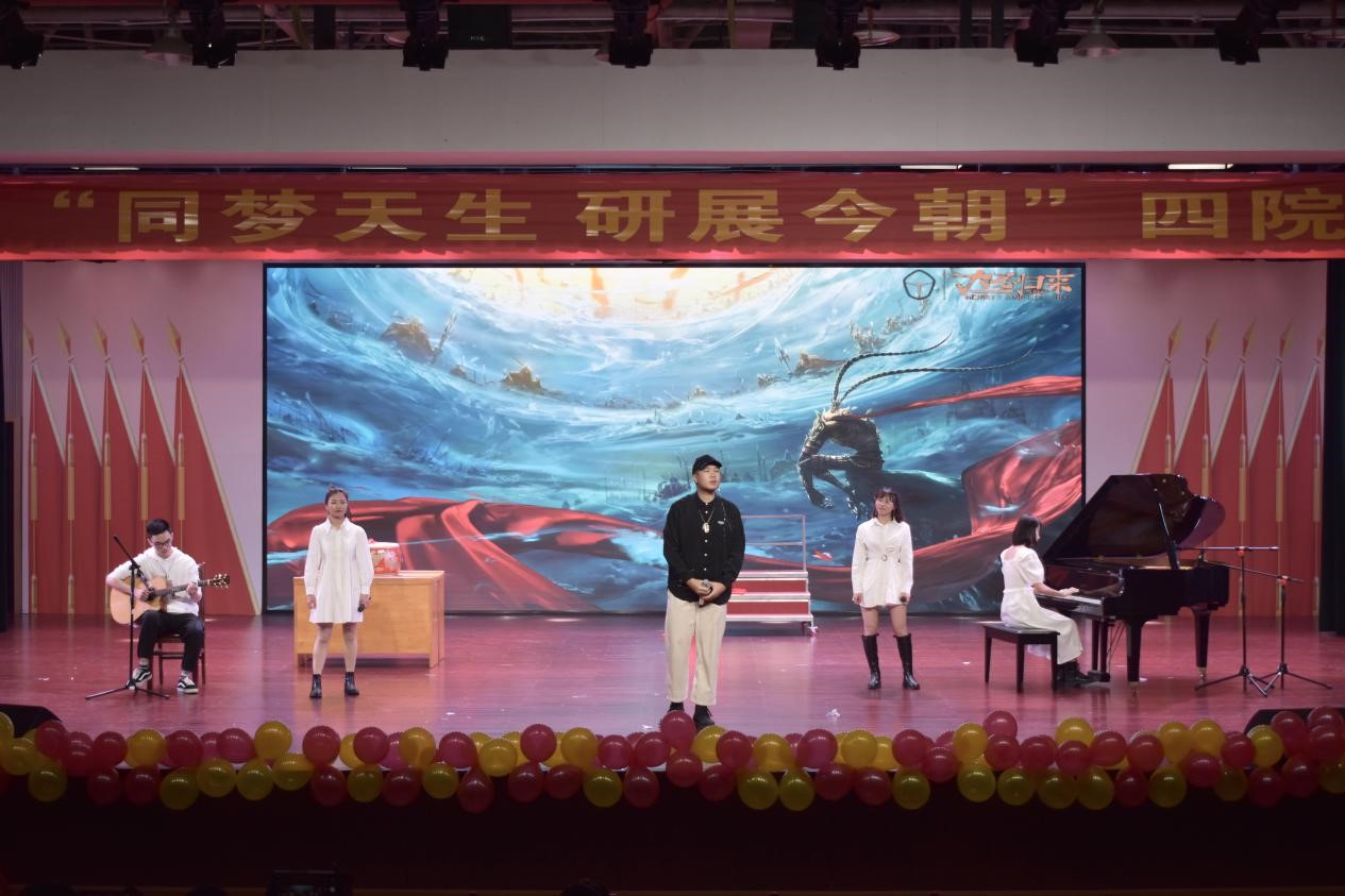 晚会节目由四院研究生联合排演,节目丰富多样,精彩纷呈,《海芋恋》空灵婉转,《here we are》热情灵动,《做个小人物》活泼俏皮,《向天再借五百年》高亢激昂。葫芦丝演奏《月光下的凤尾竹》,旋律悠扬,扣人心弦;古典舞《典狱司》舞姿刚柔并济,富有诗意。节目丰富精良,依次登场,带给观众一场精彩华丽的视听盛宴。