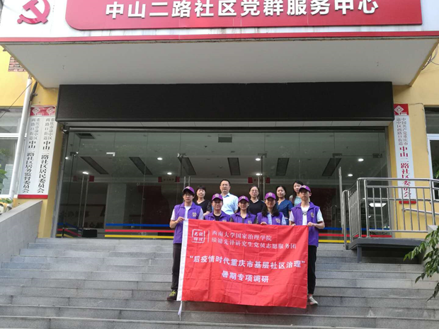 实践出真知,基层炼才干。为贯彻落实习近平总书记关于“加强党的领导,不断夯实基层社会治理根基”的重要讲话精神,探索后疫情时代基层社区治理升级问题,暑假期间,“绩镛先锋”研究生党员志愿服务团组织开展了“后疫情时代重庆市基层社区治理”专项调研活动,为研究生练好调查研究“基本功”、开展志愿服务工作提供了良好机会和平台。
