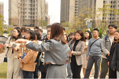 接下来,师生一行前往渝北区天海星两江数码工坊产业园进行参观学习。在安蔚老师的带领和讲解下,同学们深入天海星两江数码工坊产业园区内部,了解了两江数码工坊产业园在产业园区环境、整体设计思路、招商引资模式、未来发展规划等方面的基本情况。