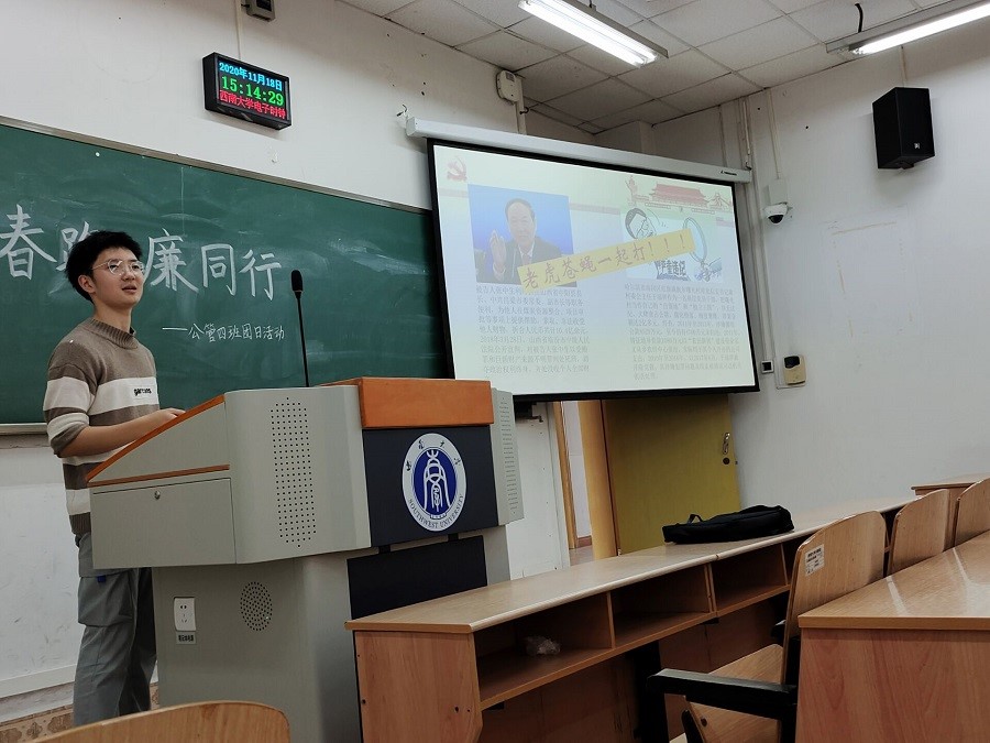 发布时间: 2020-11-26 12:03:11 已阅读:2020年11月18日,必赢线路检测中心公共管理类四班于八教502举行了“青春路,廉同行”主题团日活动。本次活动由本班团支书蒋昌军同学主持,全体四班同学参与。