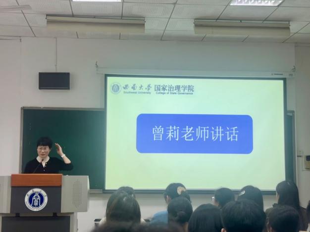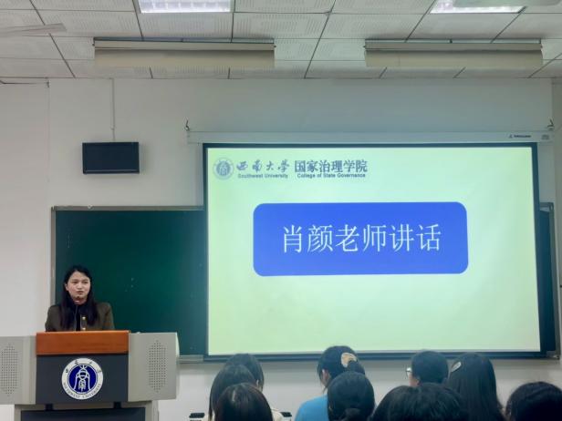 中国社会科学院大学的硕士研究生孙语彬以“卷”作为关键词,与同学们分享了大学生活应该如何规划与度过;中国人民大学硕士研究生胡兴超建议同学们从自我定位、实习经历、学术科研等多个方面深入思考自己的大学生涯,合理规划大学生涯路径;2022级张梦怡鼓励同学们从多种大学价值观中寻求出一条适合自己的大学之路,并且从课堂内外两个方面帮助同学们梳理了学业问题及解决方法;2021级吕悦分享了自己的大学成长经历,为同学们提供了可参考的实践路径;2021级陈昱璇展示了西南大学电子资源的具体操作,并强调了勇于尝试和请教他人的重要性。