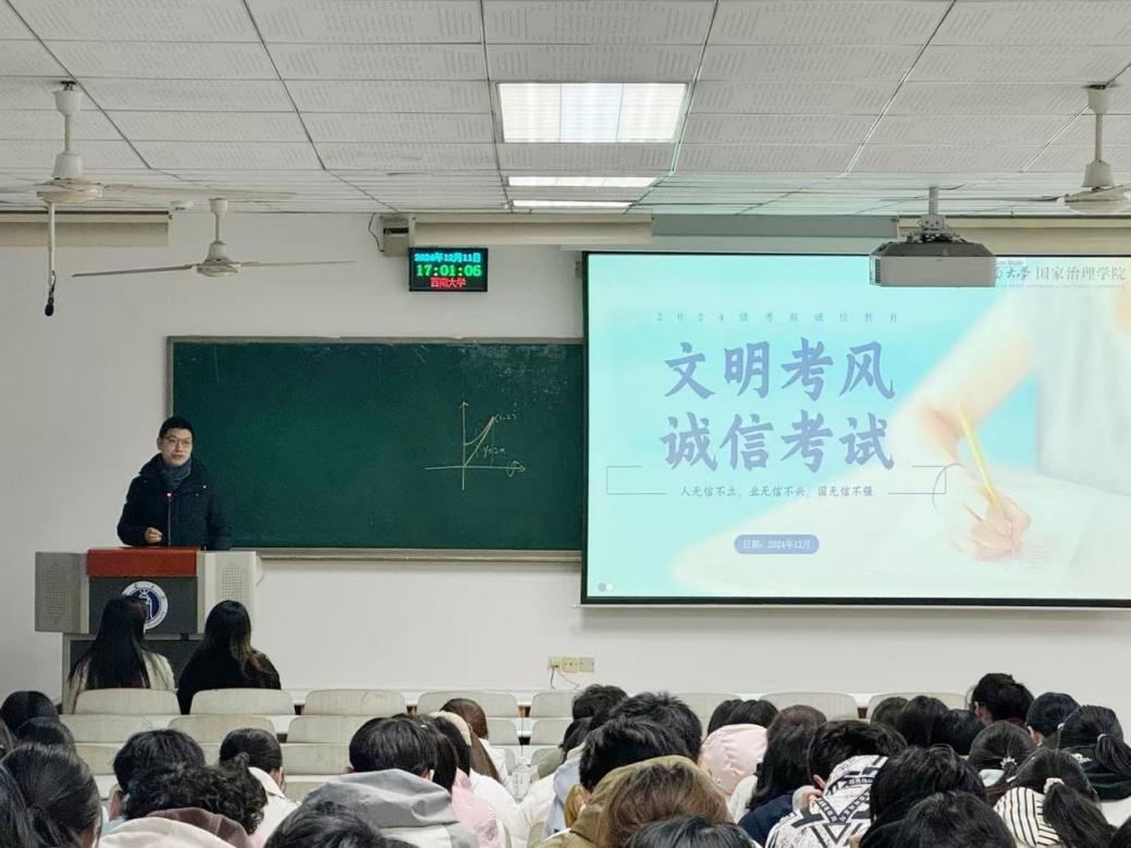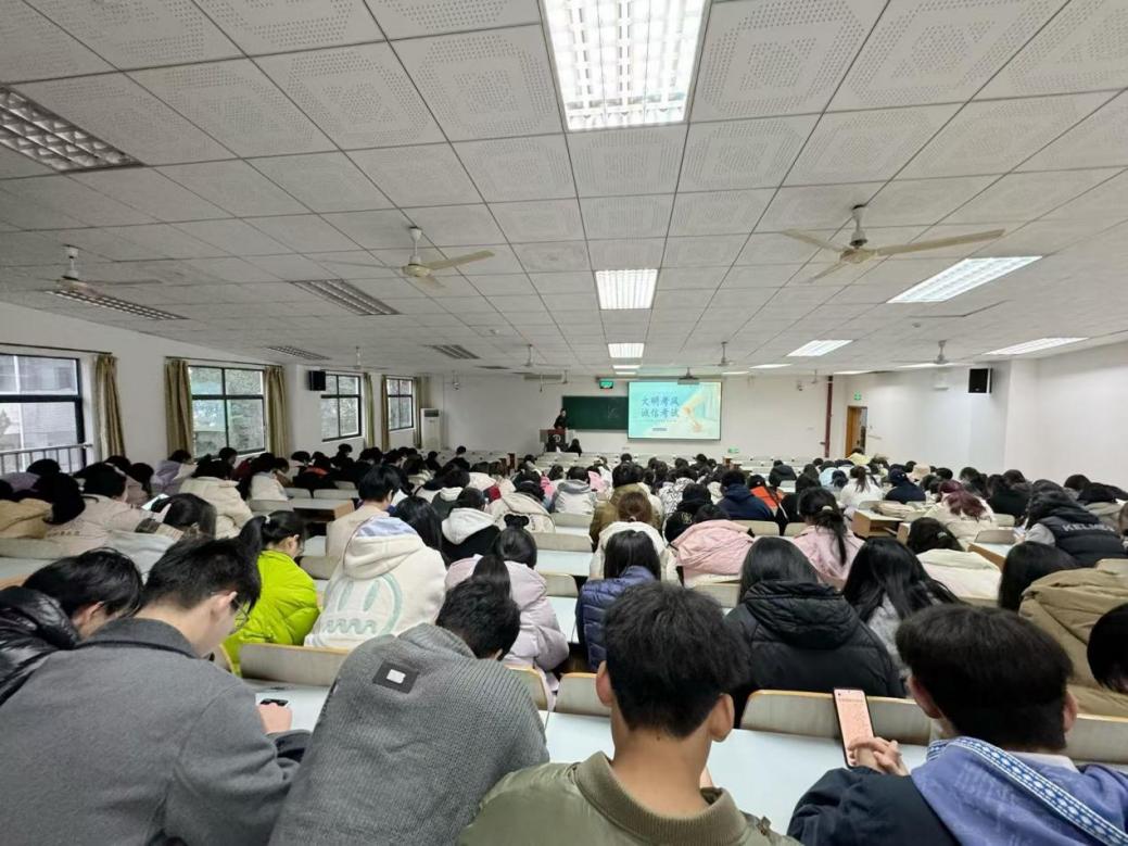 为加强本科新生对诚信考试的认识,营造良好学习氛围,12月11日,2024级本科生在10教501教室开展了“文明考风,诚信考试”主题教育活动学院副院长张永红、辅导员肖颜、兼职辅导员龙小燕和2024级全体本科生参加活动。活动由肖颜老师主持。