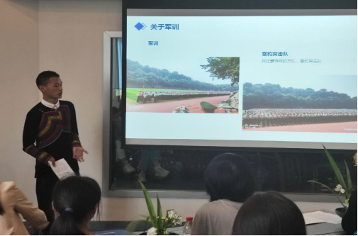 首先,来自彝族、哈萨克族、维吾尔族、壮族、傣族、苗族、瑶族等少数民族同学们依次上台用生动活泼又富有民族特色的方式做自我介绍,向与会师生分享了民族习俗、家乡特色、入学感受和成长经历等方面:来自彝族学生代表杨军和沙库阿前表演了彝族祝酒歌;来自维吾尔族学生代表古丽孜巴·艾麦尔向大家展示了一段新疆维吾尔语;来自彝族学生代表李佳杰表演了一段说唱,让活动的气氛达到了高潮,所有与会人员都沉浸在轻松愉悦的氛围中。