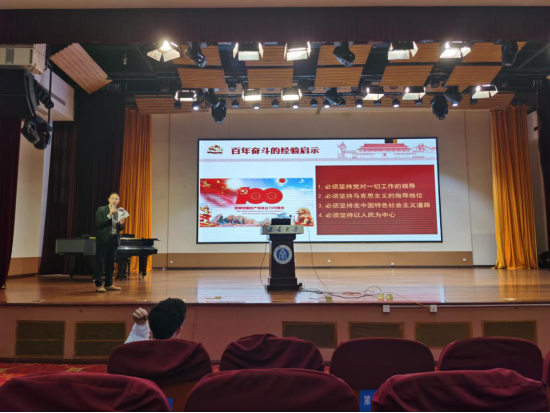 发布时间: 2021-11-01 12:59:23 已阅读:5月7日14:30,根据学校党史学习教育安排,学院全体教职工在音乐学院大演奏厅集中听取了西南大学党史宣讲团成员赵国壮教授带来的党史学习专题宣讲。赵国壮教授以《百年奋斗路,激励新征程——中国共产党百年奋斗的历史进程与历史启示》为题,深入浅出的解读了党的百年奋斗的经验启示。