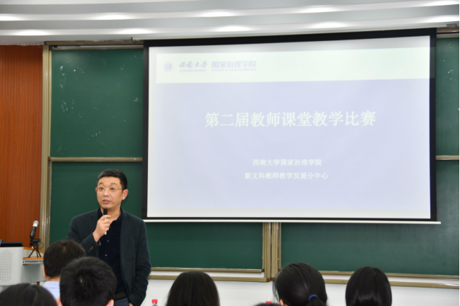 活动首先邀请西南大学教师教学发展中心杨挺副主任致辞。杨主任强调,教师的重要职责是教书育人,举办教师教学技能大赛可以为老师们上好一门课提供平台,为同学们提供观摩场所,还能促进老师们进行教学反思。优秀的教师应该坚持学习国家政策和专业知识;加强与同行交流经验,了解学生的状况与需求;把教学当成学术来研究,进行深刻的反思。最后,杨主任祝福老师们在比赛中取得优异成绩,希望大家通过活动钻研教学技能、提升教学能力并进行深入思考。