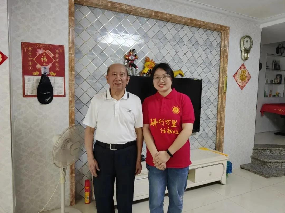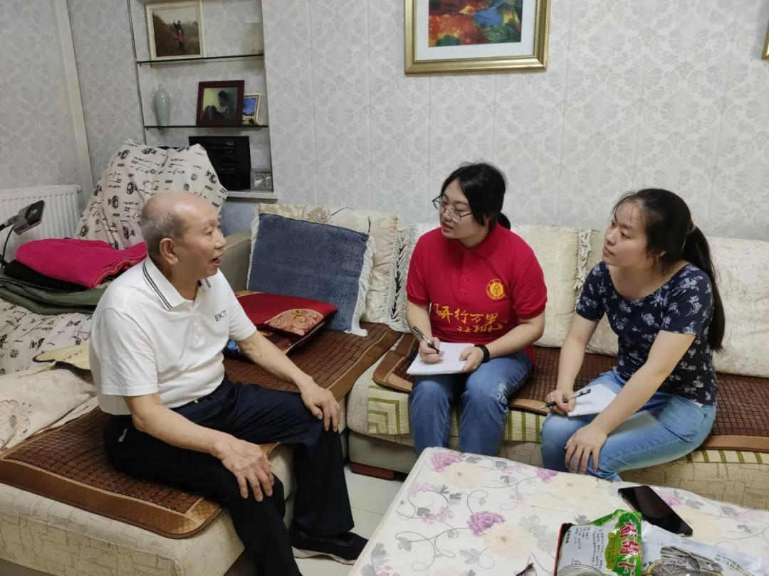胡仕贵和实践队员交流