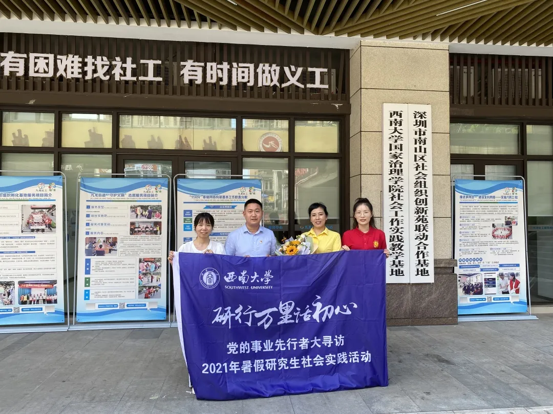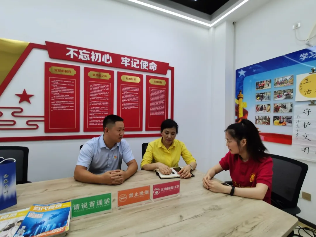 2021年7月12日上午,必赢线路检测中心研究生“红星向党”暑假社会实践队来到了陈会兰同志现在工作的地方——九龙社会工作服务中心。在我们到达之前,陈会兰刚在社区结束一个关于青少年保护的早会。见到我们,陈会兰热情的带我们参观了她工作的地方,并向我们介绍了她的基层工作经历。
